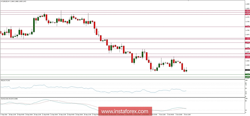 Let's now take a look at the EUR/USD technical picture at the H4 time frame. The market tried to rally higher but was capped at the level of 1.1550 and then reversed. Currently, the price is trading around the level of 1.1470, just above the technical support at the level of 1.1445. Any violation of this level would likely extend the drop towards the level of 1.1432. Please notice the clear and visible bullish divergence between the price and the momentum oscillator, so the spike up might occur any time now.