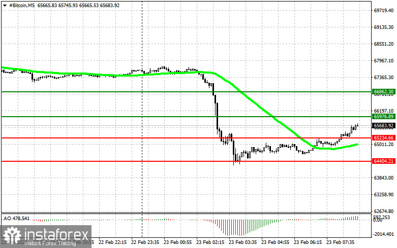 السيناريو رقم 2: يمكنني شراء Bitcoin من الحد السفلي عند 65,200 دولار إذا لم يكن هناك أي تفاعل للسوق مع اختراقه صعوداً والعودة إلى مستويات 65,900 و 66,800 دولار.