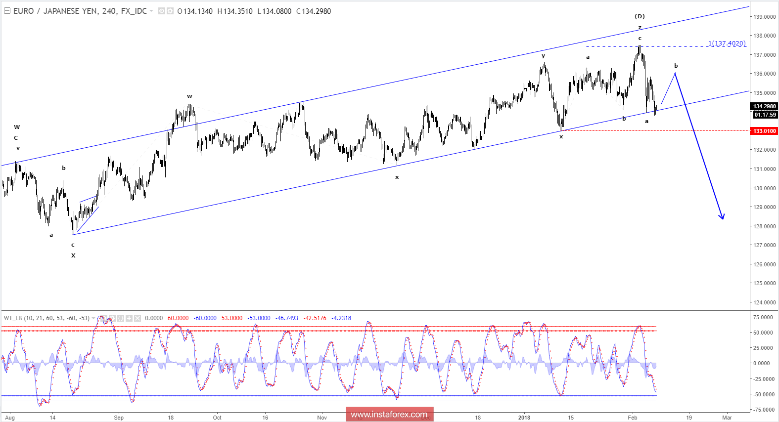 也就是说,我们也必须强调,在B波的最后反弹不必超过135.75,反而可能在135.06附近完成,并从那里开始下一个冲动性的下降。