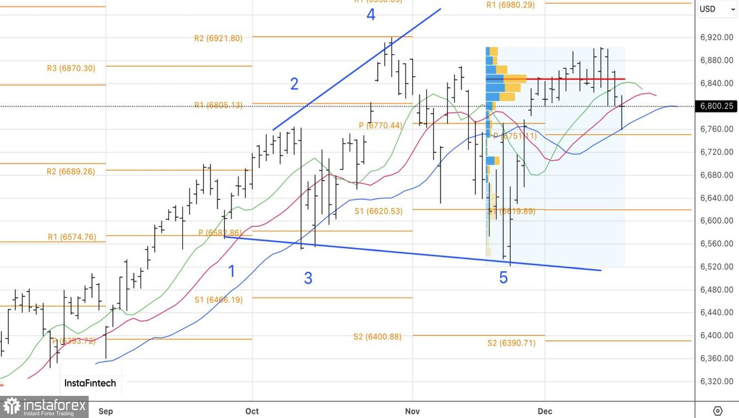 Technically, on the daily chart, the S&P 500 is forming a doji candle with a long lower shadow. There is an opportunity to set a buy limit order near its high at 6,820. If activated, this could enhance the chances of a continued rally for the broad market index and a subsequent recovery in the upward trend.