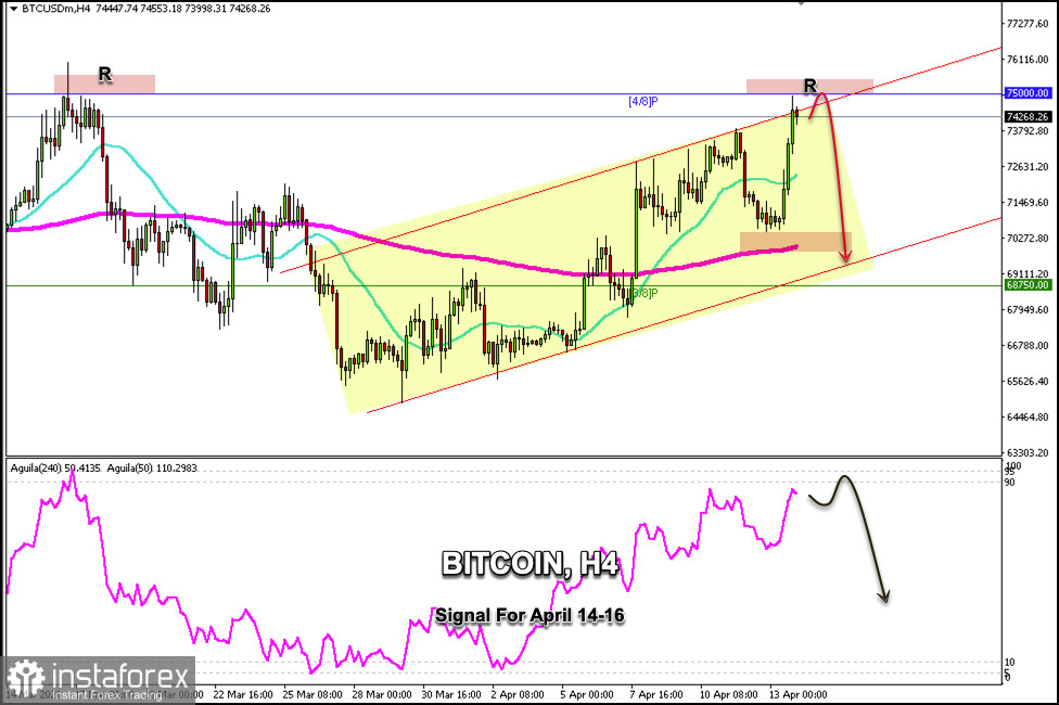 Trading Signals for BITCOIN on April 14-16, 2026: sell below $75,000 (21 SMA - 4/8 Murray)