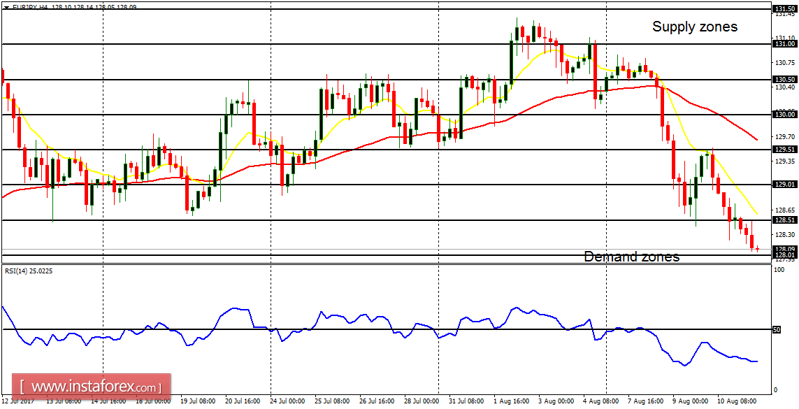 EUR/JPY: Since the much anticipated bearish signal has been generated on the EUR/JPY, its price has gone down by about 250 pips. There is a Bearish Confirmation Pattern in the 4-hour chart, and the price is now below the supply zone at 128.50, going towards the demand zone at 128, which would soon be breached to the downside as the market journeys further southwards.