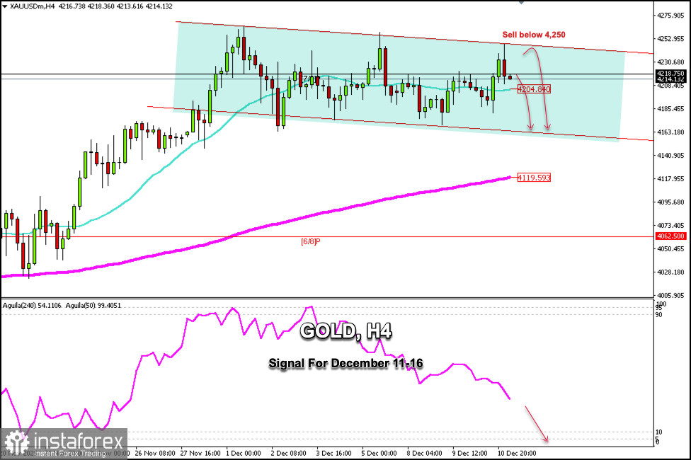 Signaux de Trading pour l'OR du 11 au 16 décembre 2025 : vente en dessous de 4 250 $ (21 SMA - 7/8 Murray)