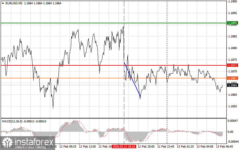 Le test du prix à 1,1872 a coïncidé avec un indicateur MACD qui commençait tout juste à se déplacer vers le bas depuis la ligne zéro, ce qui a confirmé le bon point d’entrée pour vendre l’euro. En conséquence, la paire n’a reculé que de 10 pips.