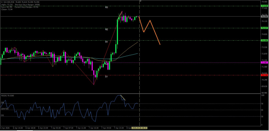 Analisa Teknikal Pergerakan Harga Intraday Perak, Hari Rabu 08 April 2026