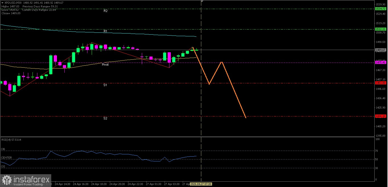 Analisa Teknikal Pergerakan harga Intraday XPD/USD, Senin 27 April 2026