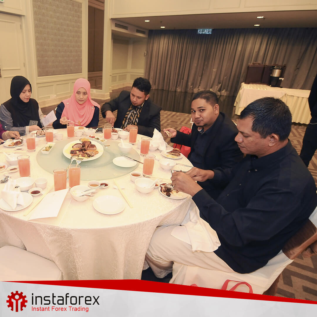 Pada hari kejadian tersebut, hampir seramai 100 pelanggan InstaForex berkumpul di Hotel mewah Eastern dan Oriental bagi membincangkan isu-isu perdagangan yang penting serta bergaul dengan indivdu yang berfikiran terbuka. Suasana yang begitu unik pada malam perjumpaan itu telah membangkitkan semangat kekitaan di kalangan semua tetamu.