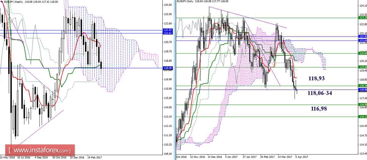 Если же игроки на повышение в ближайшее время завладеют 118,06-34, то начальное преимущество младших таймфреймов будет принадлежать им. Наиболее важным ориентиром для восстановления позиций будет служить дневной Тенкан (118,94), промежуточное сопротивление Киджун Н4 (118,61).