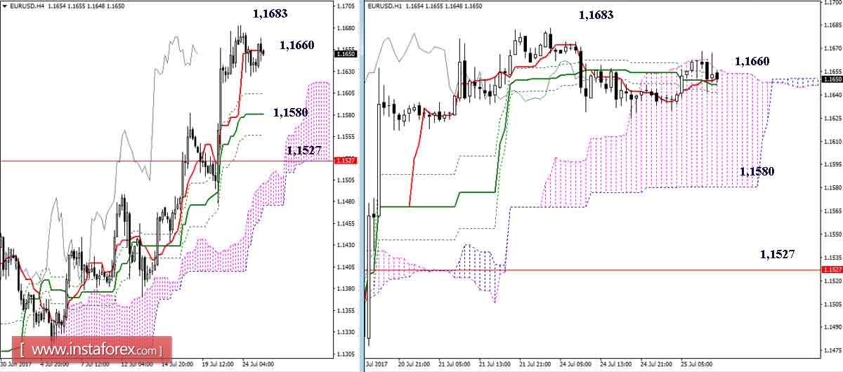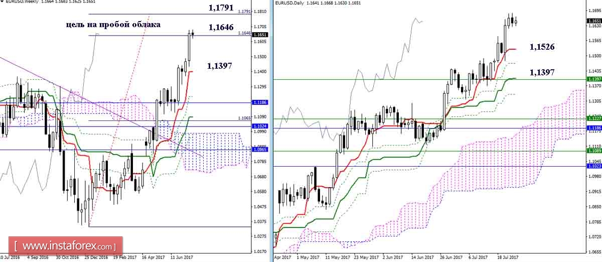 Дневной обзор EUR/USD и USD/JPY на 25.07.17. Индикатор Ишимоку