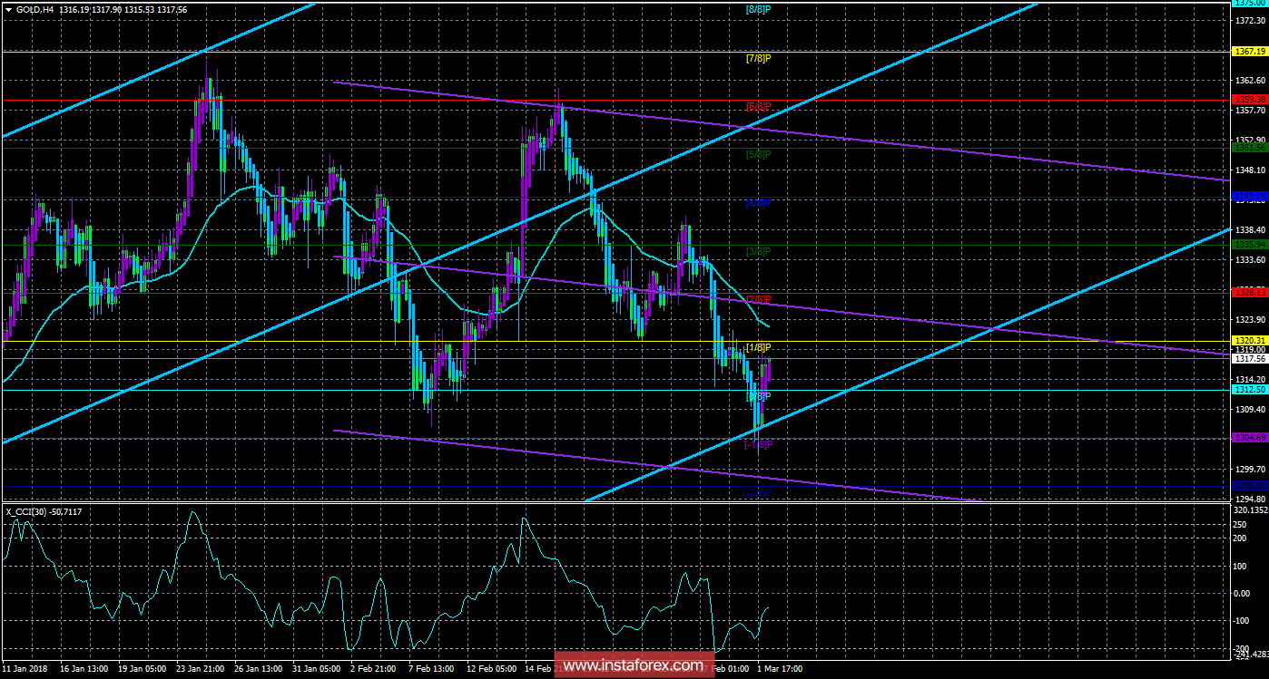 Техническая картина инструмента GOLD по системе «Каналы регрессии» за 2 марта 2018 года