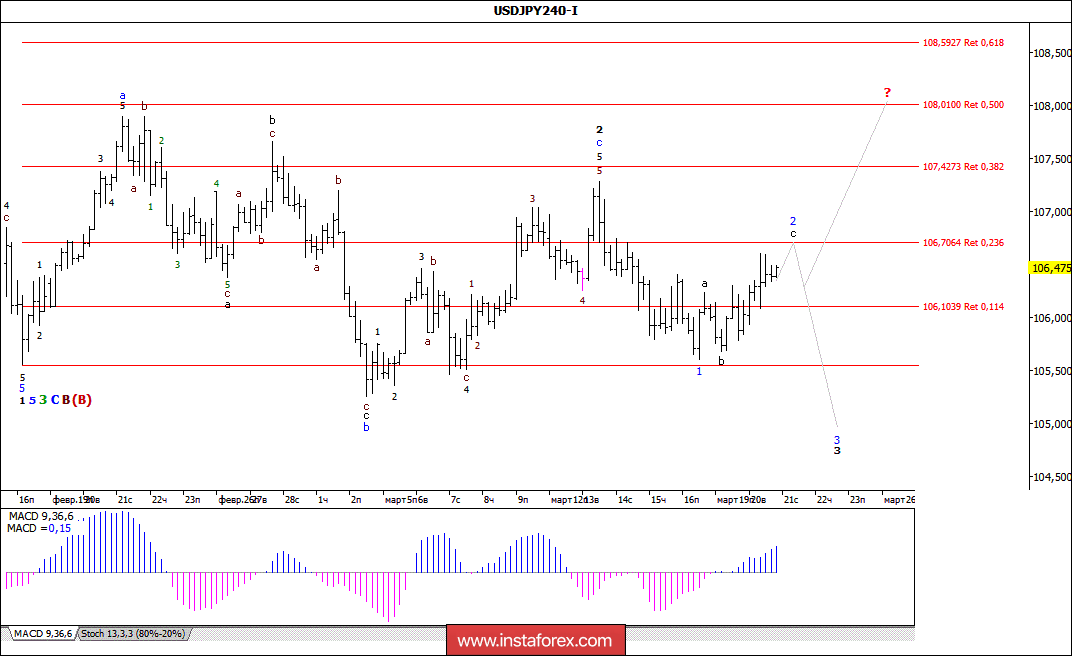 Волновой анализ валютной пары USD/JPY за 22 марта 2018 года