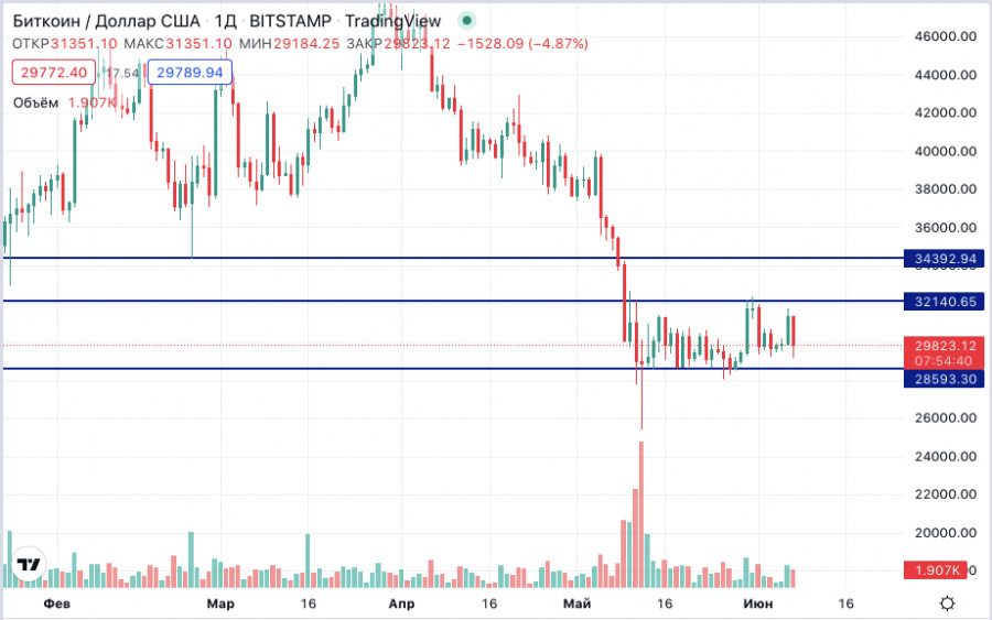 Но технически у главной криптовалюты остается запас хода к поддержке в области 28 000 долларов за монету, откуда целесообразно ожидать отскока вверх. Актуальным сопротивлением для главной криптовалюты все еще остается непреодоленный уровень в 32 000 долларов за биткоин.