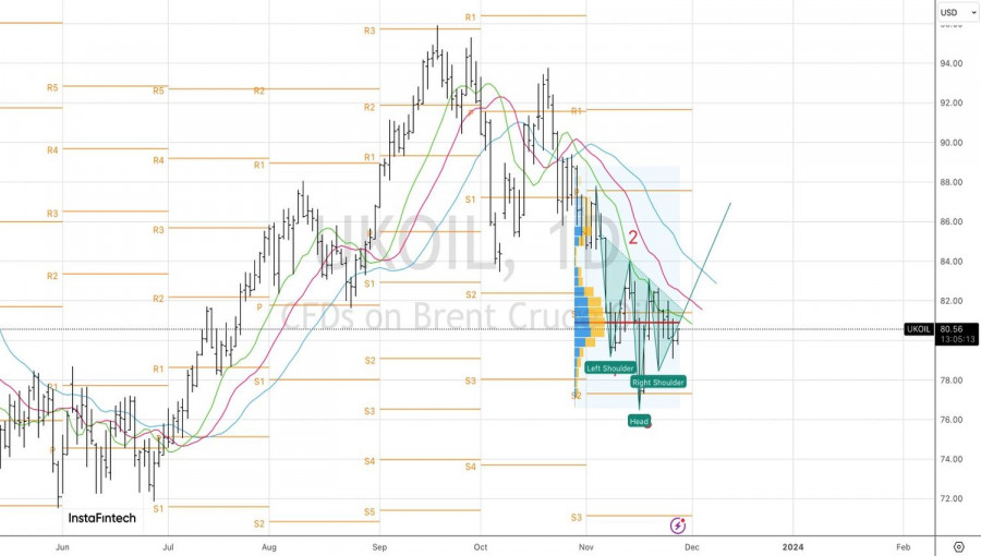 Технически на дневном графике Brent прорыв справедливой стоимости на $80,9 и пивот-уровня $81,45 за баррель активируют перевернутый паттерн Голова и плечи и станут основаниями для формирования длинных позиций по нефти. Продавать североморский сорт имеет смысл в случае падения котировок ниже $79.