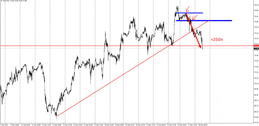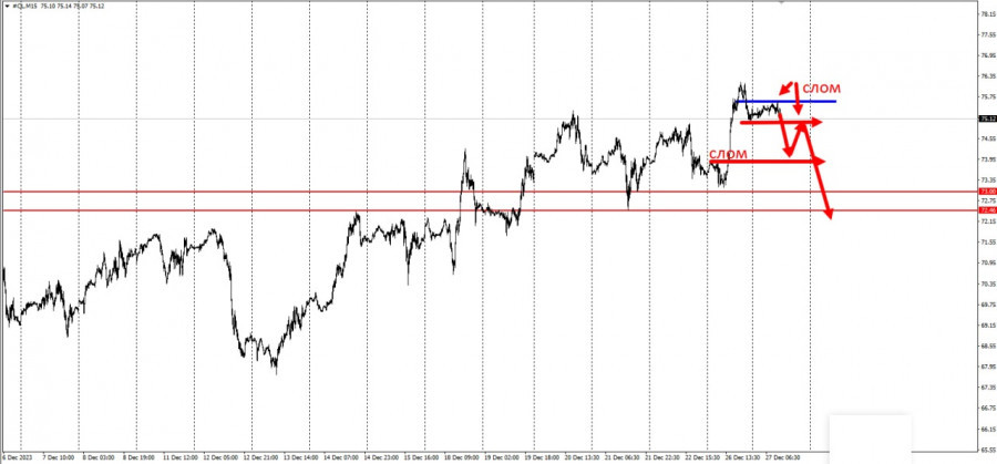 Сегодня котировки нефти перешли к резкому снижению и переписали уровень вторника, что привело к частичной отработке нашего шортового сценария: