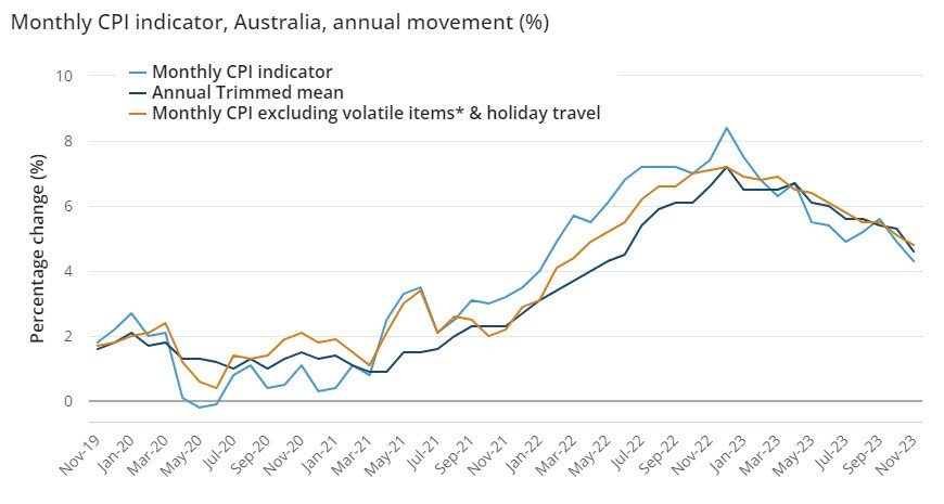 Ежемесячный индикатор индекса потребительских цен вырос в ноябре на 4.3%, что все еще очень много, но позитивная динамика очевидна, поскольку в октябре рост составил 4.9%, а в сентябре 5.6%.