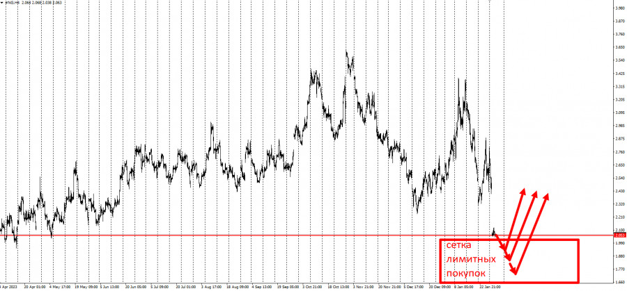 Итак, после экспирации газ обвалился в район 2$, что открывает существенные лонговые коррекционные перспективы для покупателей "по хорошим ценам" этого ценного энергетического актива. Предлагаем торговую идею на повышение по следующей схеме: