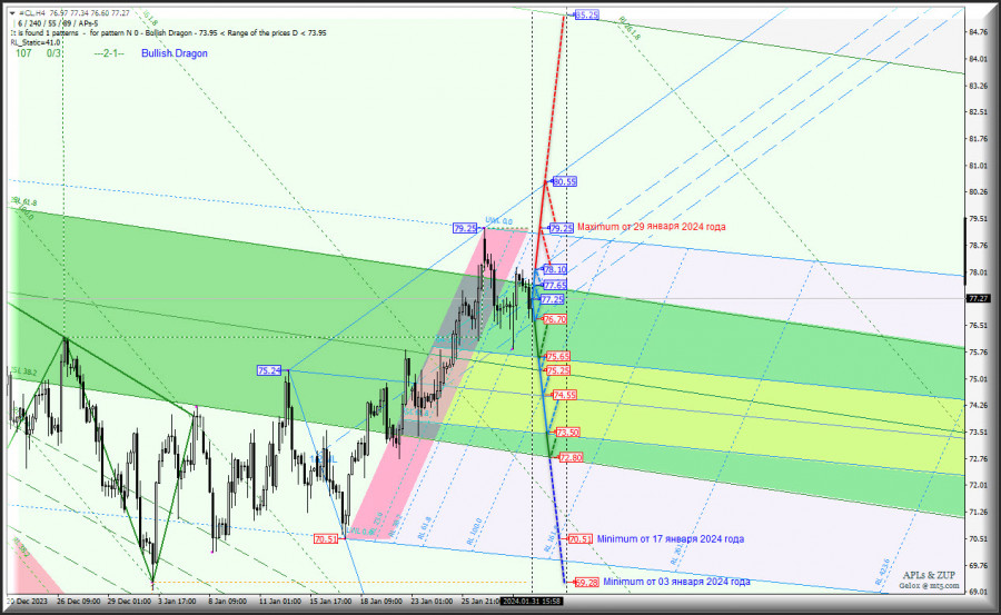 Основные технические уровни для торговли #CL-h4 - обзор вариантов движения c 1 февраля 2024 года.