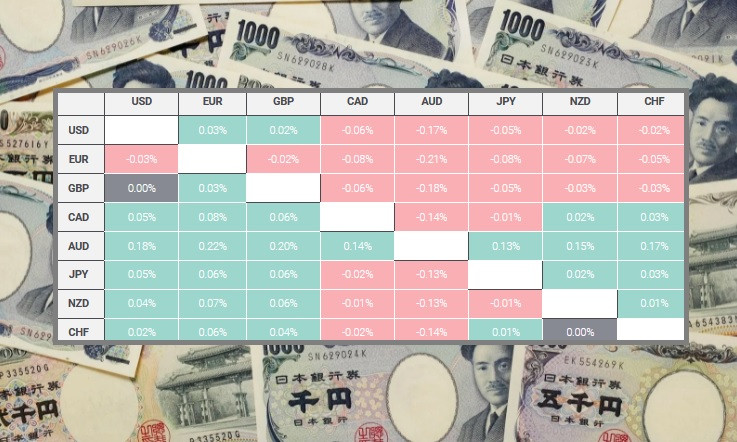 В таблице ниже показано процентное изменение японской йены по отношению к основным валютам, перечисленным на сегодняшний день.