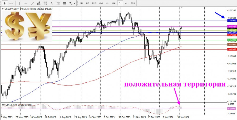 С технической точки зрения, для того чтобы в ближайшее время быки смогли взять контроль над рынком, необходимо преодолеть сопротивление с несколькими вершинами 148,68-148,80.