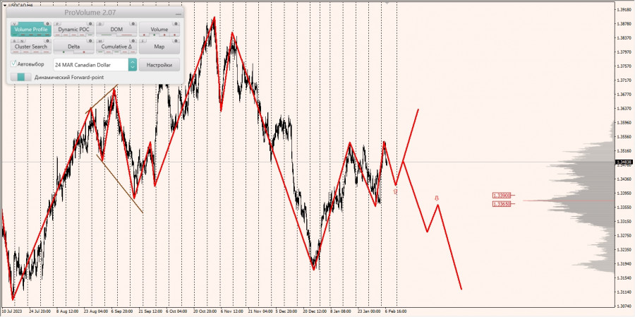 Долгосрочная тенденция: в лонг. Максимальное скопление объемов текущего контракта расположено в диапазоне по котировкам 1.33650-1.33900. В настоящий момент по паре совершаются инвестиционные операции выше, указывая на силу покупателей.