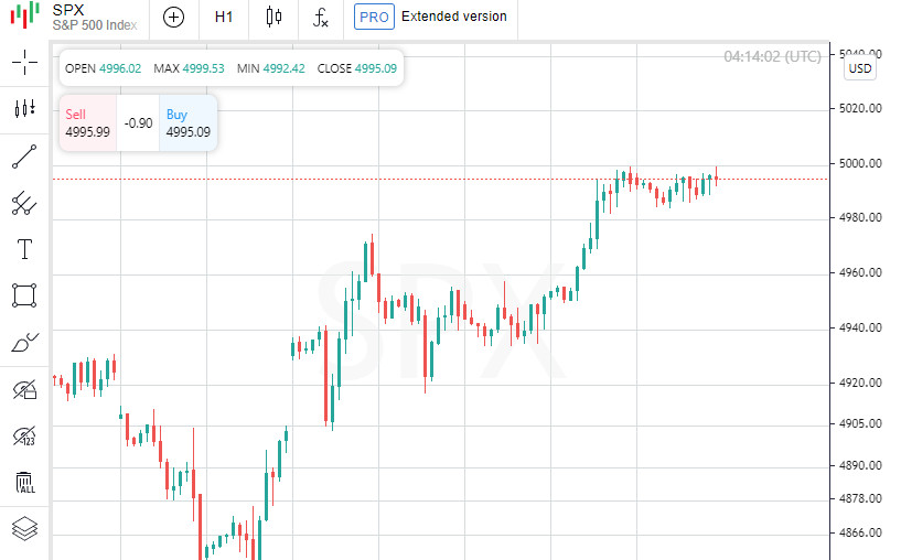 В четверг на Уолл-стрит был зафиксирован рост основных индексов, при этом индекс S&P 500 колебался около значимой отметки 5000 пунктов. Рынок реагировал на свежие отчеты о прибыли компаний и данные о занятости в США, что также способствовало росту курса американского доллара.