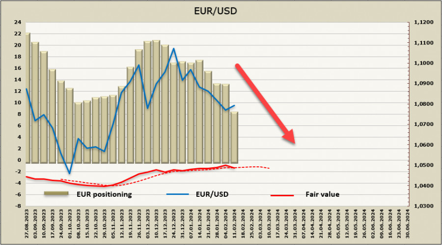 Как считает член Совета управляющих ЕЦБ Изабель Шнабель, последние экономические данные указывают на то, что регулятор может повременить с принятием решения о сокращении процентных ставок. По ее мнению, регулятор ждет дополнительных экономических данных, чтобы понять, как изменения в уровне инфляции и заработной платы согласуются с монетарной политикой ЕЦБ. В любом случае нужно исходить из того, что ЕЦБ вряд ли начнет снижение ставок раньше ФРС, но ожидания смещаются в пользу того, что это произойдет если не одновременно, то лишь с небольшой задержкой, что, в свою очередь, ухудшает перспективы евро.