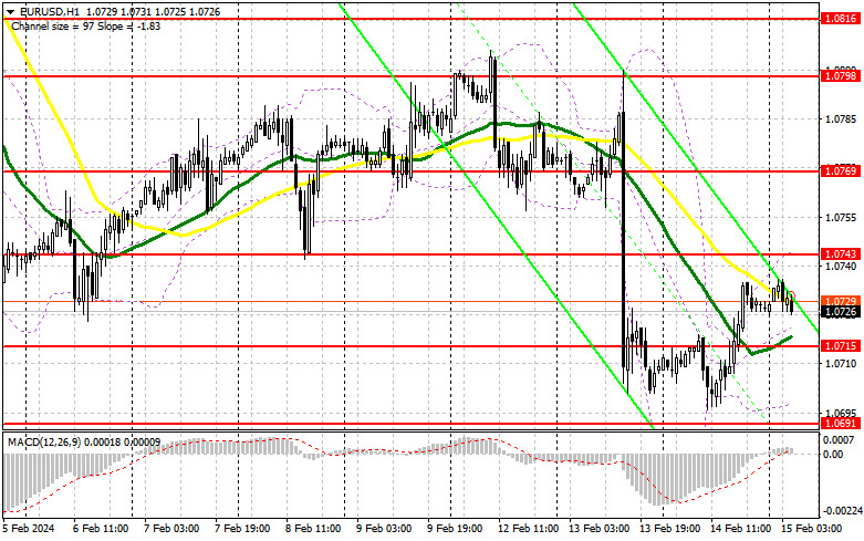 Действовать в рамках восходящей коррекции планирую только после снижения и формирования ложного пробоя в районе ближайшей поддержки 1.0715, образованной по итогам вчерашнего дня. Там также проходят средние скользящие, играющие на стороне быков, что станет подходящим условием для покупок в расчете на новую восходящую коррекцию в район 1.0743. Прорыв и обновление сверху вниз этого диапазона дадут шанс на покупку с рывком на 1.0769. Самой дальней целью выступит максимум 1.0798, где буду фиксировать прибыль. При варианте снижения EUR/USD и отсутствия активности на 1.0715 в первой половине дня давление на пару увеличится, однако до крупной распродажи дело вряд ли дойдет. В таком случае заходить в рынок планирую лишь после формирования ложного пробоя в районе 1.0691. Открывать длинные позиции сразу на отскок буду от 1.0667 с целью восходящей коррекции в 30-35 пунктов внутри дня.