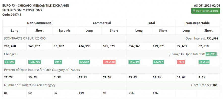В COT-отчете (Commitment of Traders) за 6 февраля наблюдался рост длинных и коротких позиций. Очевидно, что после заседаний Федеральной резервной системы и Европейского центрального банка продавцов евро стало намного больше, так как всем понятно, что никто пока ничего менять не собирается. Но если прошлая неделя была довольно спокойной, то в ближайшее время нас ждут довольно важные данные по инфляции в США, способные изменить в рынке многое. Очередной скачок ценового давления приведет к укреплению позиций доллара и резкой распродаже европейской валюты, что с довольно большим запаздыванием демонстрирует нам увеличение коротких позиций по евро. Если инфляция вернется к снижению, вернется и спрос на рисковые активы. В COT-отчете указано, что длинные некоммерческие позиции выросли на 2 090, до уровня 202 450, в то время как короткие некоммерческие позиции выросли на 28 708, до уровня 140 297. В результате спрэд между длинными и короткими позициями вырос на 947.