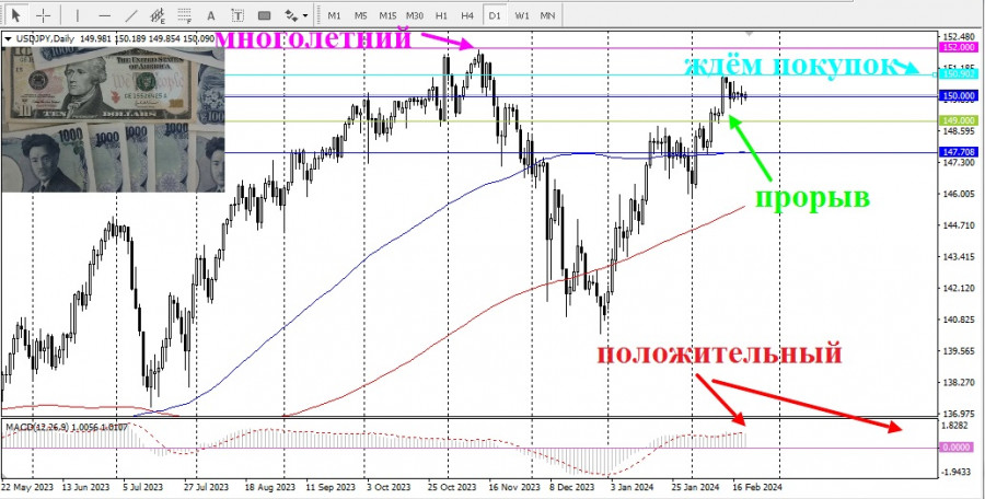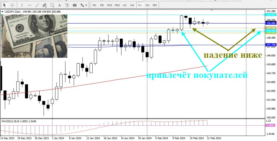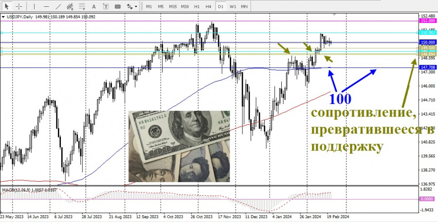 Затем следует круглая фигура 149,00 и сопротивление 148,80, превратившееся в поддержку, которая выступает в качестве ключевой опорной точки.