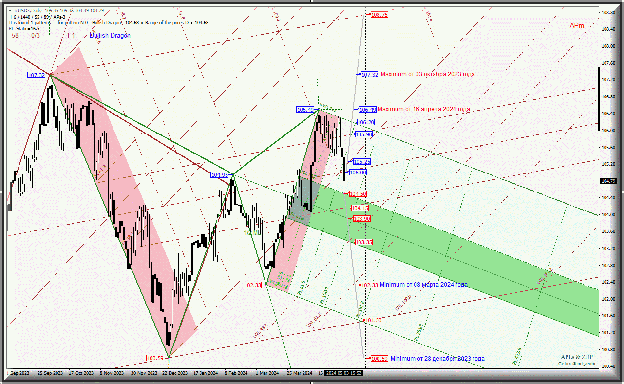 #USDX - Daily - обзор вариантов движения - с 6 мая 2024 г.