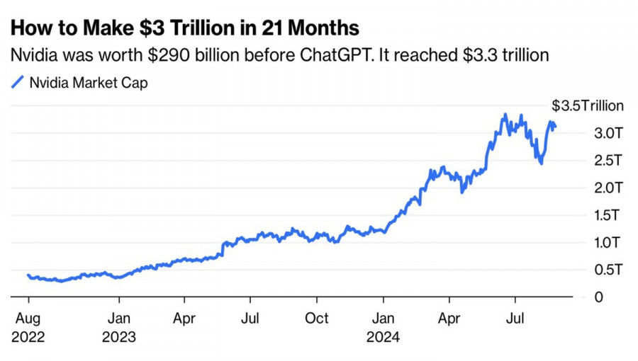 В августе инвесторы как кролик на удава смотрели на Джексон Хоул, где Джером Пауэлл заявил, что пришло время корректировать монетарную политику, и на отчет NVIDIA. За неполные два года капитализация компании достигла отметки $3,3 трлн, что составляет около 6% от рыночной стоимости S&P 500. Неудивительно, что финансовые результаты технологического гиганта приковывали внимание трейдеров.