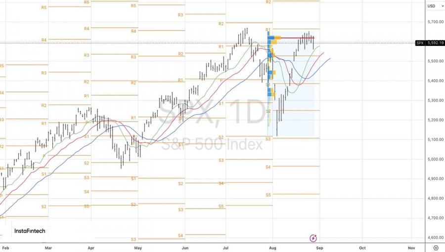 Падение акций технологического гиганта потащило вниз и широкий фондовый индекс. Однако пока полноценной коррекцией не пахнет. Похоже, S&P 500 прошел испытание отчетностью NVIDIA. Если так, то, по мнению Nomura, он вырастет до 5750 к концу сентября. Goldman Sachs прогнозирует скорый новый рекордный пик на фоне реализации принципа FOMO – покупай, а то проиграешь.