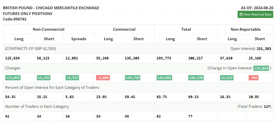 B COT-отчете (Commitment of Traders) за 20 августа наблюдался резкий рост длинных позиций и небольшое сокращение коротких. Определенно, все больше и больше людей ставят на рост фунта, который на прошлой неделе продемонстрировал одну из самых сильных серий укрепления за последнее время. Не страшит рынок и тот факт, что Банк Англии собирается и дальше снижать процентные ставки, так как все уверены в более агрессивной политике смягчения стоимости заимствований со стороны Федеральной резервной системы США. Так что вряд ли тут приходится говорить о силе фунта, скорее речь идет о слабом американском долларе, проблемы у которого сохранятся в ближайшее время – особенно на фоне статистики, свидетельствующей о дальнейшем снижении инфляции в США, ожидающей нас на этой неделе. В последнем COT-отчете говорится, что длинные некоммерческие позиции подскочили на 23 031, до уровня 125 634, тогда как короткие некоммерческие позиции выросли на 3 332, до уровня 58 123. В итоге спрэд между длинными и короткими позициями вырос на 3 517.