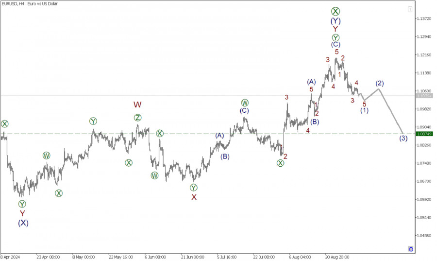 С точки зрения волнового анализа по валютной паре EURUSD может формироваться глобальная коррекционная тенденция, которая принимает сложную форму и состоит из подволн [W]-[X]-[Y].