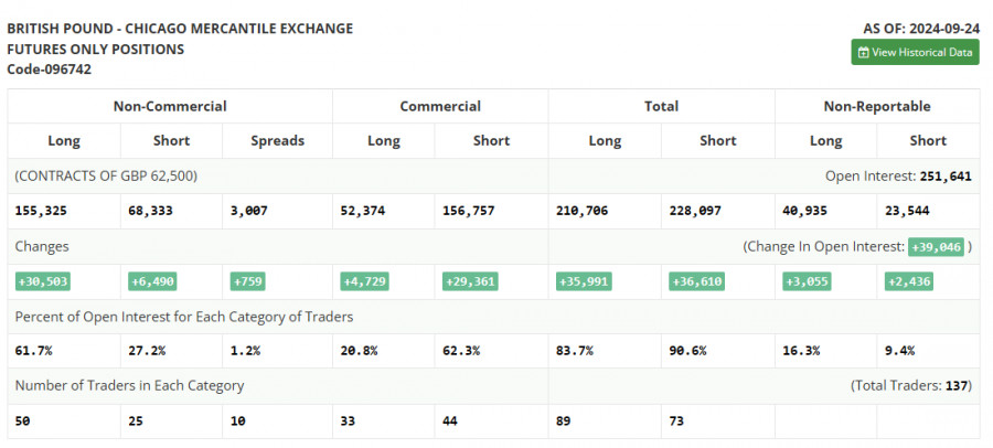 B COT-отчете (Commitment of Traders) за 24 сентября наблюдался рост коротких и длинных позиций. Очевидно, что после решения Банка Англии оставить денежно-кредитную политику без изменений, а также Федеральной резервной системы снизить процентные ставки, покупателей фунта с каждым днем становится все больше. Шансы на то, что Центральный банк США продолжит мягкую политику, лишь подогревают к покупкам рисковых активов, отталкивая от американского доллара. Выступления представителей Банка Англии с заявлениями о том, что экономика сильна и чувствует себя хорошо, также способствуют притоку новых трейдеров, ставящих на среднесрочное укрепление британца. В последнем COT-отчете указано, что длинные некоммерческие позиции выросли на 30 503, до уровня 155 325, тогда как короткие некоммерческие позиции выросли на 6 490, до уровня 68 333. В итоге спрэд между длинными и короткими позициями вырос на 759.