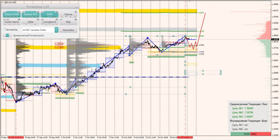 Среднесрочная тенденция: в лонг. Максимальное скопление объемов среднесрочной тенденции расположено в диапазоне по котировкам 1.37780-1.3800. В настоящий момент по паре совершаются инвестиционные операции выше, указывая на силу покупателей.