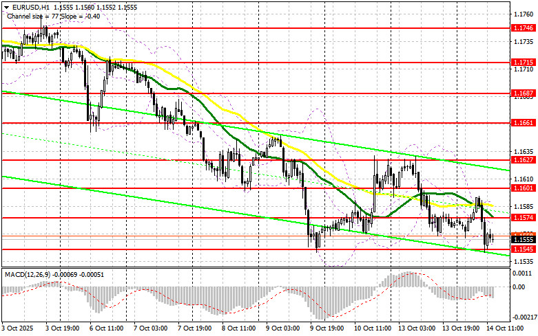 Продавцы проявили себе, и еще один тест минимума прошлой недели наверняка приведет к куда более крупной распродаже евро. Если трейдеры отреагируют покупками на заявления представителей ФРС, действовать собираюсь в районе ближайшего сопротивления 1.1574, образованного по итогам первой половине дня. Лишь формирование там ложного пробоя по аналогии с тем, что я разбирал выше, будет для меня поводом для коротких позиций с целью снижения к уровню 1.1545. Прорыв и закрепление ниже этого диапазона станут подходящим вариантом на продажу уже с движением в район 1.1520. Самой дальней целью выступит область 1.1489, где буду фиксировать прибыль. В случае движения вверх EUR/USD во второй половине дня, а также отсутствия активных действий медведей в районе 1.1574, где проходят средние скользящие, играющие на стороне медведей, покупатели получат шанс на более крупный рывок, что откроет дорогу в район следующего сопротивления 1.1601. Продавать там буду только после неудачного закрепления. Открывать короткие позиции сразу на отскок я планирую от 1.1627 с целью нисходящей коррекции в 30-35 пунктов.
