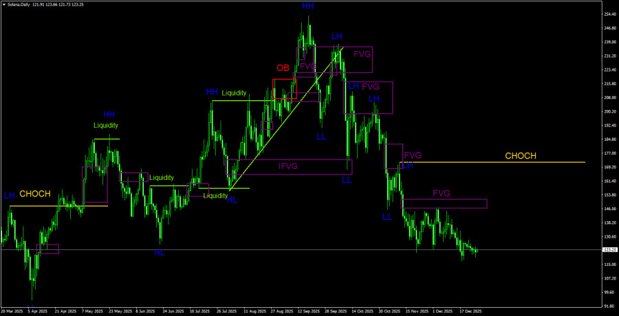 Торговые рекомендации по Солане(Solana) на 27 декабря по системе ICT.
