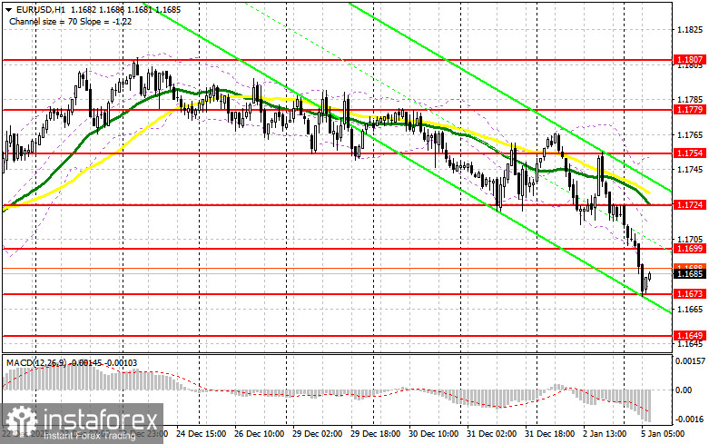 Военные действия США в Венесуэле привели к укреплению американского доллара против ряда рисковых активов. Учитывая сложную геополитическую обстановку, скорей всего спрос на доллар сохранится в ближайшее время. Сегодня в первой половине дня нет никакой статистики по еврозоне, так что не удивляйтесь, если евро продолжит терять. В случае дальнейшего падения пары первого проявления покупателей ожидаю в районе ближайшей поддержки 1.1673. Только формирование там ложного можно даст точку входа в длинные позиции с целью небольшого восстановления к 1.1699. Прорыв и обратный тест этого диапазона станут подтверждением правильных действий на покупку евро уже в расчете на более крупный рывок к 1.1724. Самой дальней целью выступит максимум 1.1754, где буду фиксировать прибыль. Тест этого уровня вернет бычий рынок по евро. При варианте снижения EUR/USD, и отсутствия активности в районе 1.1673, давление на пару усилится, что может привести к более крупному движению евро вниз. В таком случае медведи попытаются дотянуться до следующего интересного уровня 1.1649. Лишь формирование там ложного пробоя будет подходящим условием на покупку евро. Открывать длинные позиции сразу на отскок будут от 1.1619 с целью восходящей коррекции в 30-35 пунктов внутри дня.