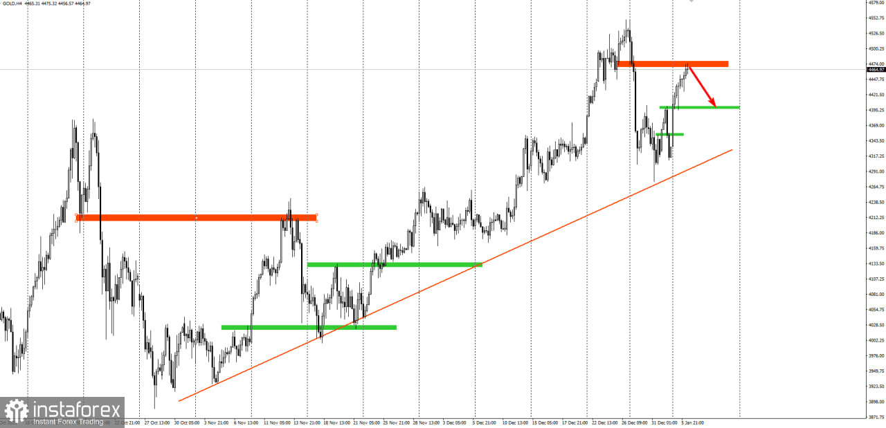 Риски ограничить 4548. Прибыль зафиксировать на пробое 4400.