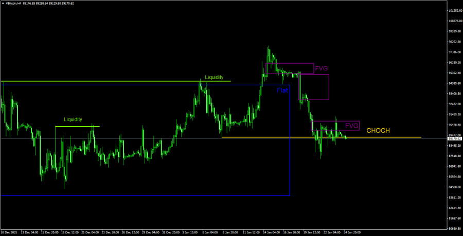 Торговые рекомендации по Биткоину(Bitcoin) на 25 января по системе ICT.
