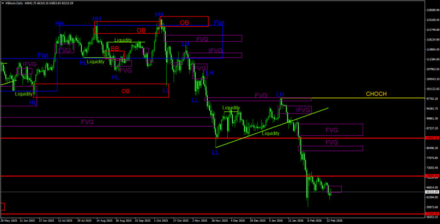 Торговые рекомендации по Биткоину(Bitcoin) на 25 февраля по системе ICT.