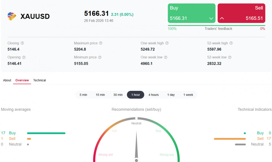 *) см. также: Торговые индикаторы InstaForex по XAU/USD Золото удерживается выше 5100.00 долларов за унцию на фоне геополитики и тарифных рисков. XAU/USD сохраняет умеренно восходящий уклон и торгуется вблизи 5170.00 – 5180.00 в начале американской торговой сессии, оставаясь также в диапазоне текущей недели. Попытки закрепиться выше 5200.00 пока не получают устойчивого продолжения, что отражает осторожность инвесторов перед ключевыми геополитическими и макроэкономическими событиями. Боковая динамика указывает на баланс двух сил спроса на защитные активы из-за геополитических рисков