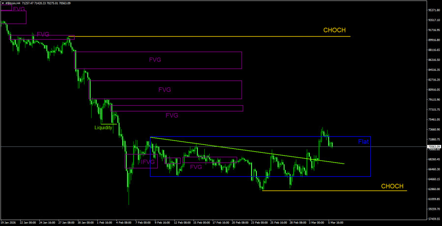 Биткоин по-прежнему не демонстрирует особого желания расти, но в последние пару дней все же поднялся на несколько тысяч долларов. Впрочем, на данный момент этот рост не позволяет ему завершить флэт. Около верхней границы бокового канала сформирована девиация, поэтому уже сегодня-завтра первая криптовалюта может устремиться обратно к нижней границе бокового канала. То есть к уровню 65 100$. Если девиация окажется ложной, то для идентификации дальнейшего роста в любом случае требуется завершение флэта. Тем временем, американский финансист и инвестор Рэй Далио