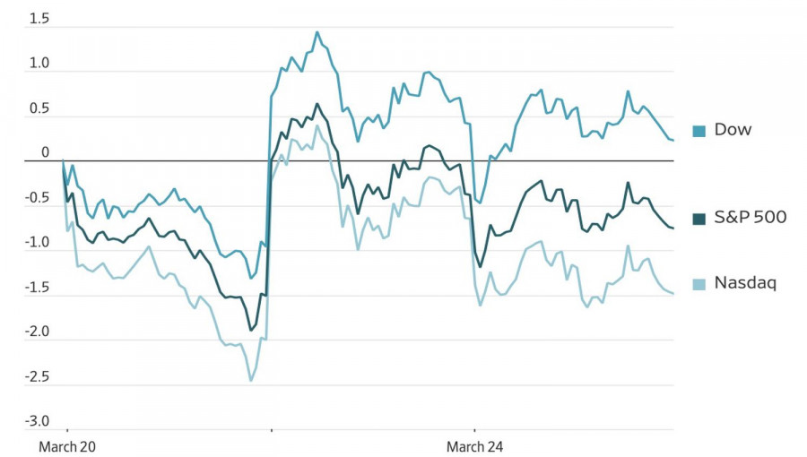Пока слишком рано открывать шампанское. Несмотря на ободряющие новости с Ближнего Востока о переговорах, вооруженный конфликт продолжается. Ракеты Ирана попали в Тель-Авив, Саудовская Аравия думает присоединиться к коалиции США и Израиля, а Вашингтон собирается отправить в регион около 3000 солдат из элитной 82-й воздушно-десантной дивизии. Наземная операция не исключена, что заставляет S&P 500 нажать на тормоза после разгона на ожиданиях быстрой сделки. Динамика американских фондовых индексов Одним из главных драйверов двузначного