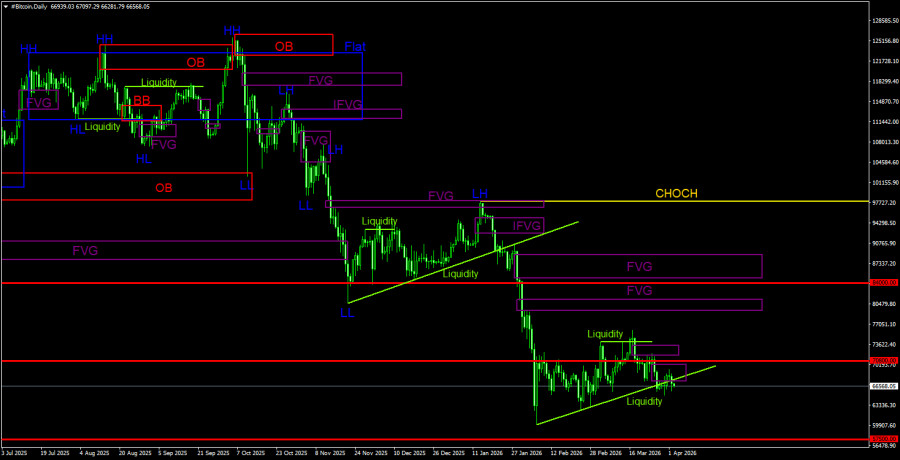Торговые рекомендации по Биткоину(Bitcoin) на 3 апреля по системе ICT