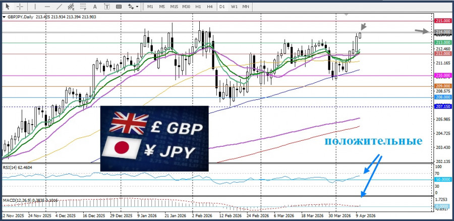 Пара GBP/JPY демонстрирует позитивную динамику на протяжении пяти дней подряд, достигая нового двухмесячного максимума у круглого уровня 214,00. А поддерживающий фундаментальный фон указывает на возможность продолжения восходящего тренда.