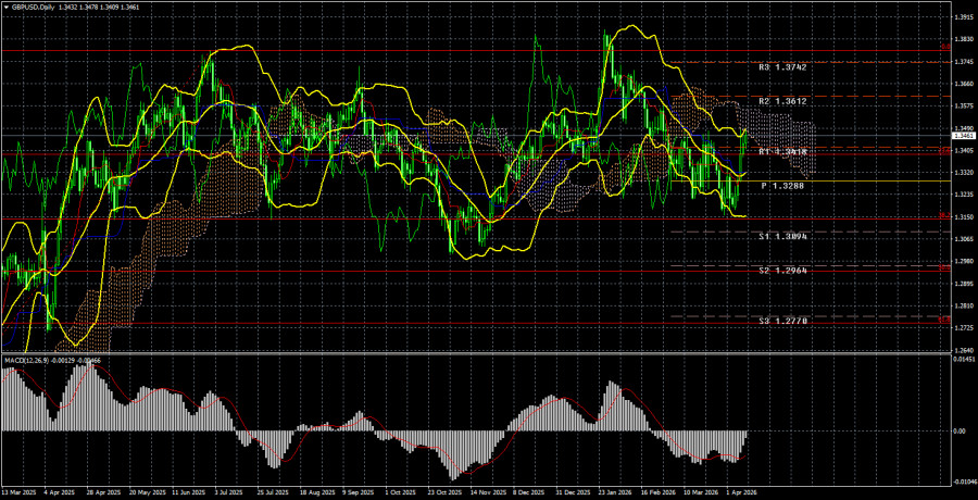 Валютная пара GBP/USD в течение текущей недели также показала сильное восходящее движение, хотя большая его часть пришлась на ночь среды, когда Дональд Трамп неожиданно объявил двухнедельное перемирие. По теме перемирия между Ираном и США, его нарушения в тот же день, а также дальнейших переговоров было сказано уже многое, поэтому не будем повторяться. Факт остается фактом – рынок реагирует сейчас только на геополитику, поэтому только о геополитике и приходится говорить каждый день. Однако рано или поздно фактор геополитики отойдет