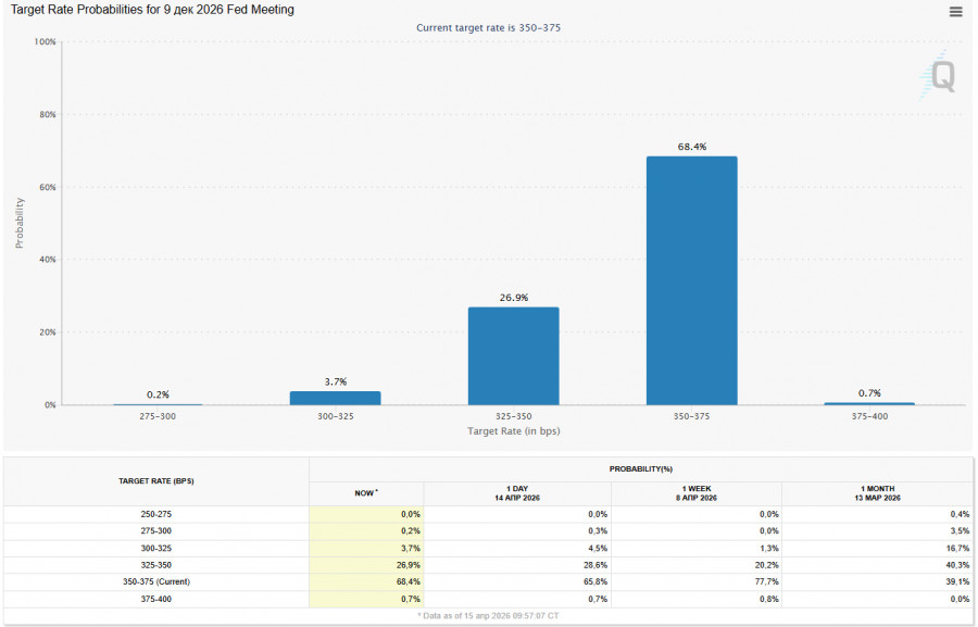 ФРС. Фьючерсный рынок оценивает вероятность снижения ставки в 2026 году всего в 35%. Президент ФРБ Чикаго Остан Гулсби предположил, что снижение ставки может быть отложено до 2027 года, если высокие цены на нефть сохранятся.