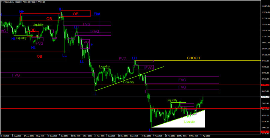 Торговые рекомендации по Биткоину(Bitcoin) на 18 апреля по системе ICT